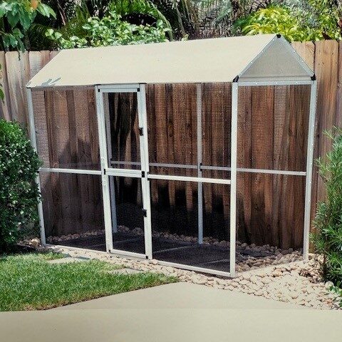 Unlike wrought iron outdoor cages that start to rust immediately or wood framed cages that tend to rot and mold, our outdoor aviaries and enclosures are built with aluminum frames and other “non-rusting” materials that are meant to last for years and years. Even our decorative faux bamboo and thatch bird cage and aviaries have an extended multi-year life span.